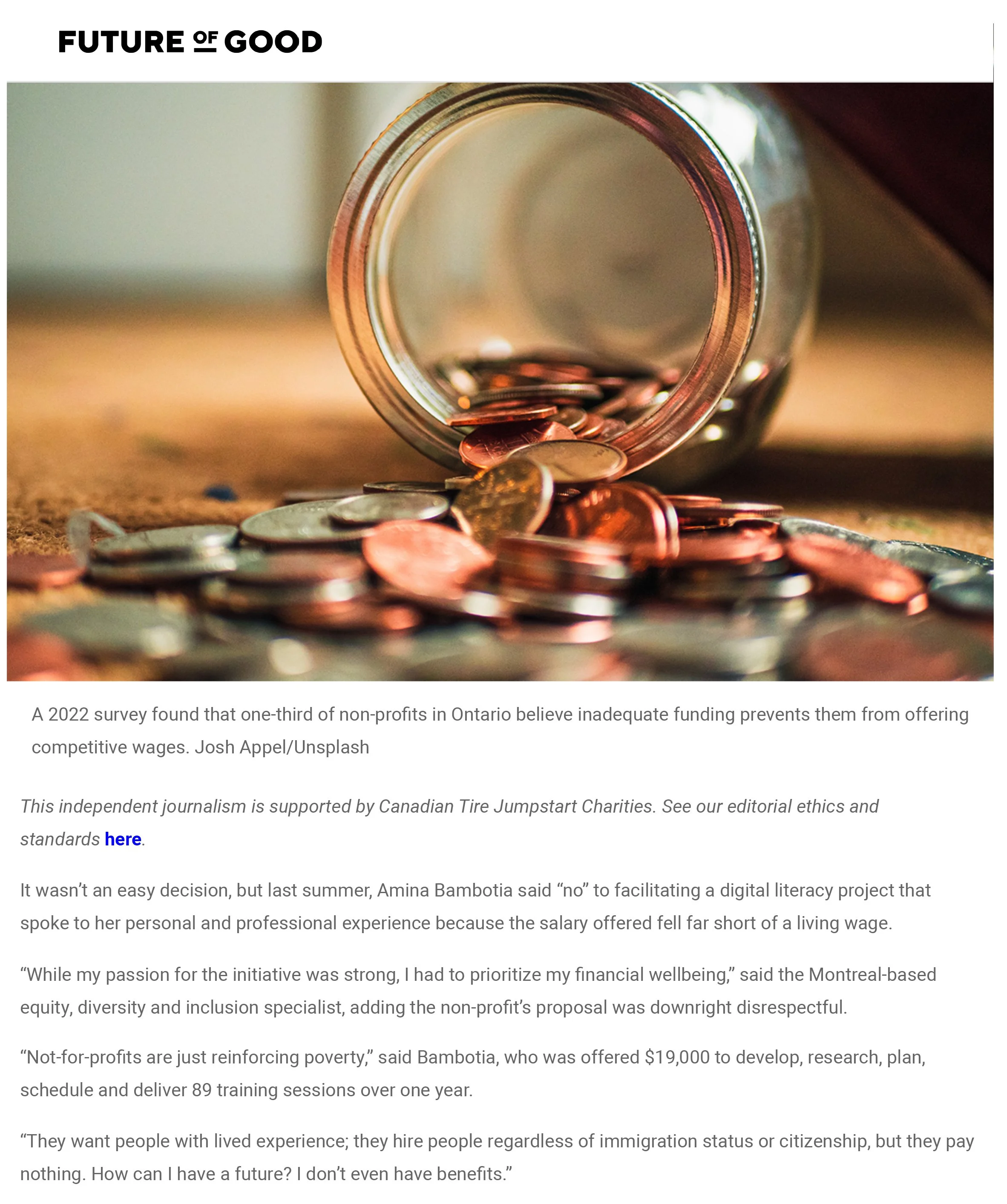 It wasn’t an easy decision, but last summer, Amina Bambotia said “no” to facilitating a digital literacy project that spoke to her personal and professional experience because the salary offered fell far short of a living wage.